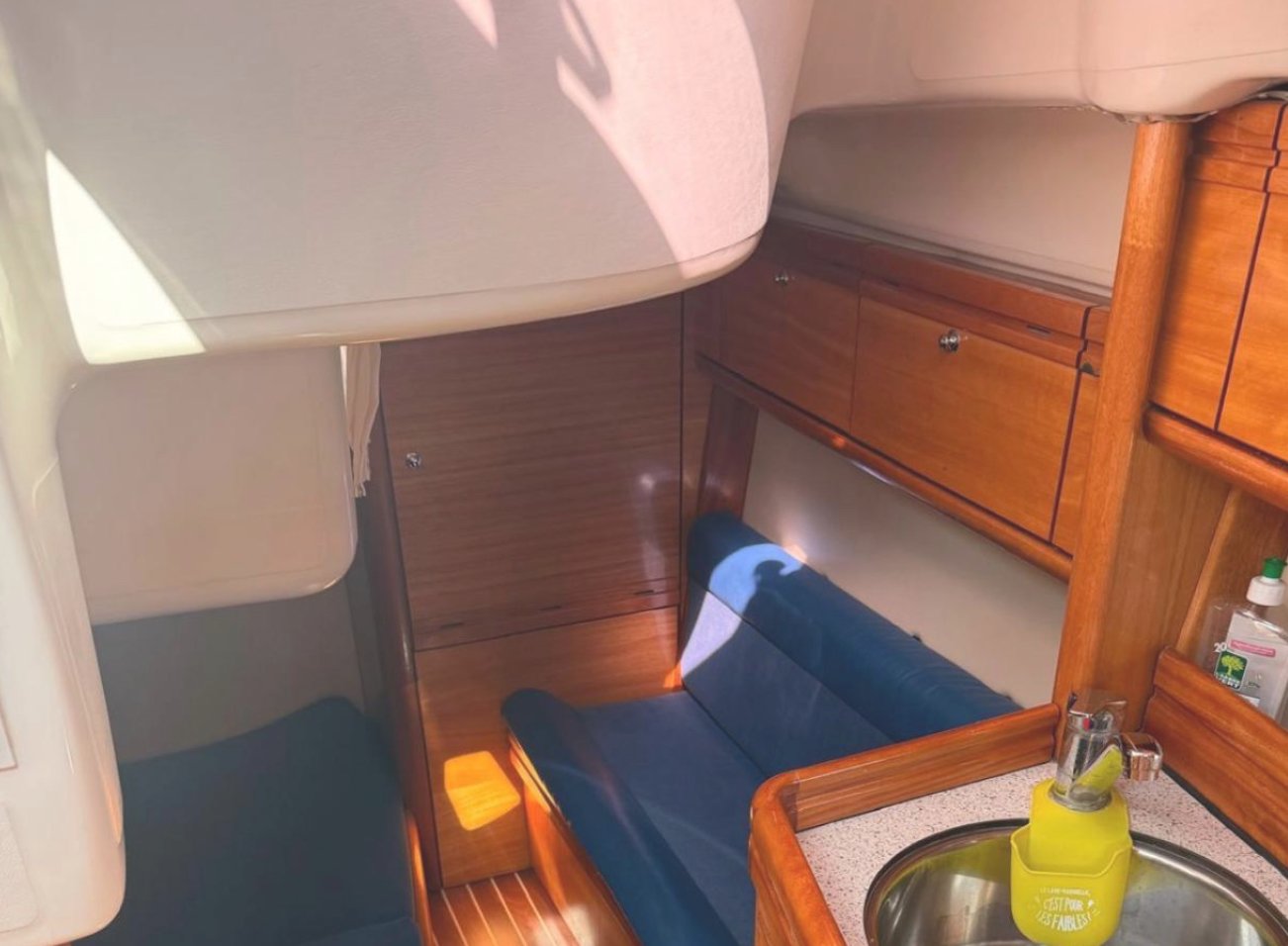 🛌 4 couchages répartis entre une cabine avant accueillante et une cabine arrière discrète : parfait pour les nuits à la belle étoile… ou presque.