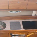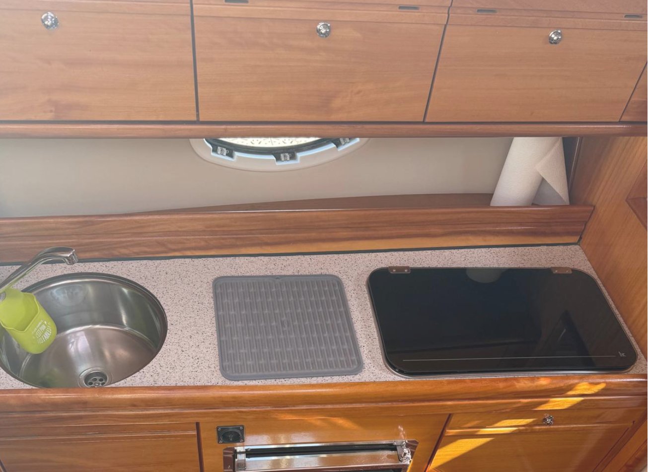 🍴 Cuisine équipée avec évier, frigo (x2) et carré transformable pour partager des repas face à l’horizon.