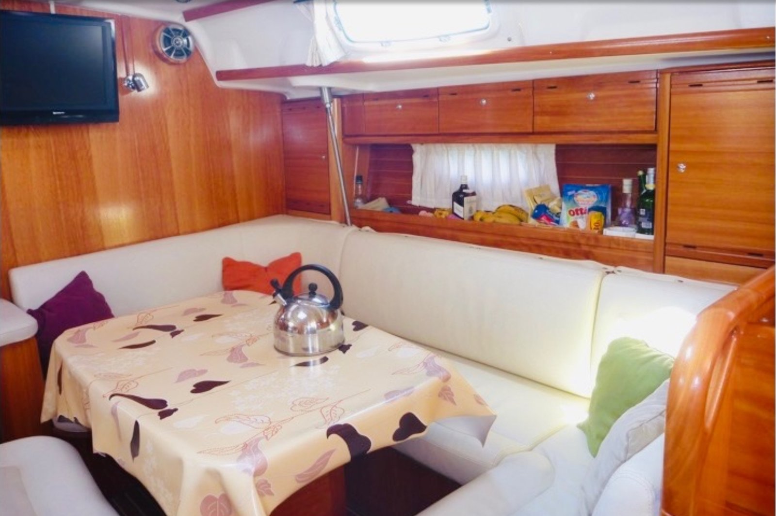 • 3 cabines généreuses, literie neuve, sellerie “blanc cassé” GMR, surmatelas, ambiance soignée