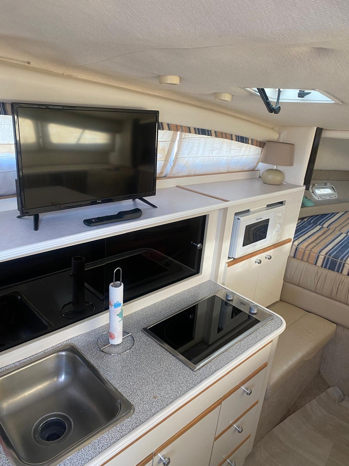 📍 Lieu : Village naturiste du Cap d’Agde 📅 Année : 1998 ⛽ Moteur : Mercruiser 250 CV ⛵ Longueur : 9,22 m | Largeur : 2,92 m | Tirant d’eau : 1,13 m 🔋 Batteries de service : neuves (2025) Capacité : 6 personnes | Couchages : 4 (2 cabines doubles) Salle de bain : 1