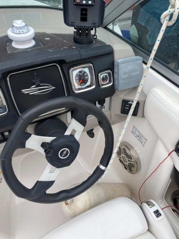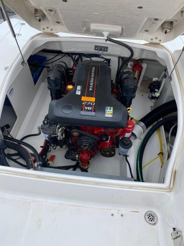 Solide, racé, et prêt à reprendre la mer, il embarque avec lui l’esprit des grandes échappées. Son moteur V8 Mercury de 270 CV (seulement 130 heures) promet puissance et fiabilité, tandis que ses lignes élégantes invitent à la détente comme à l’aventure.