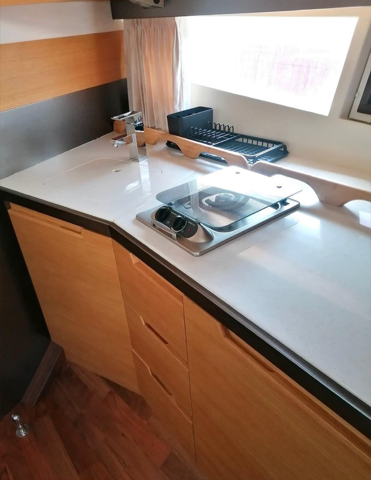 • Réservoir eau douce : 215 L inox avec jauge