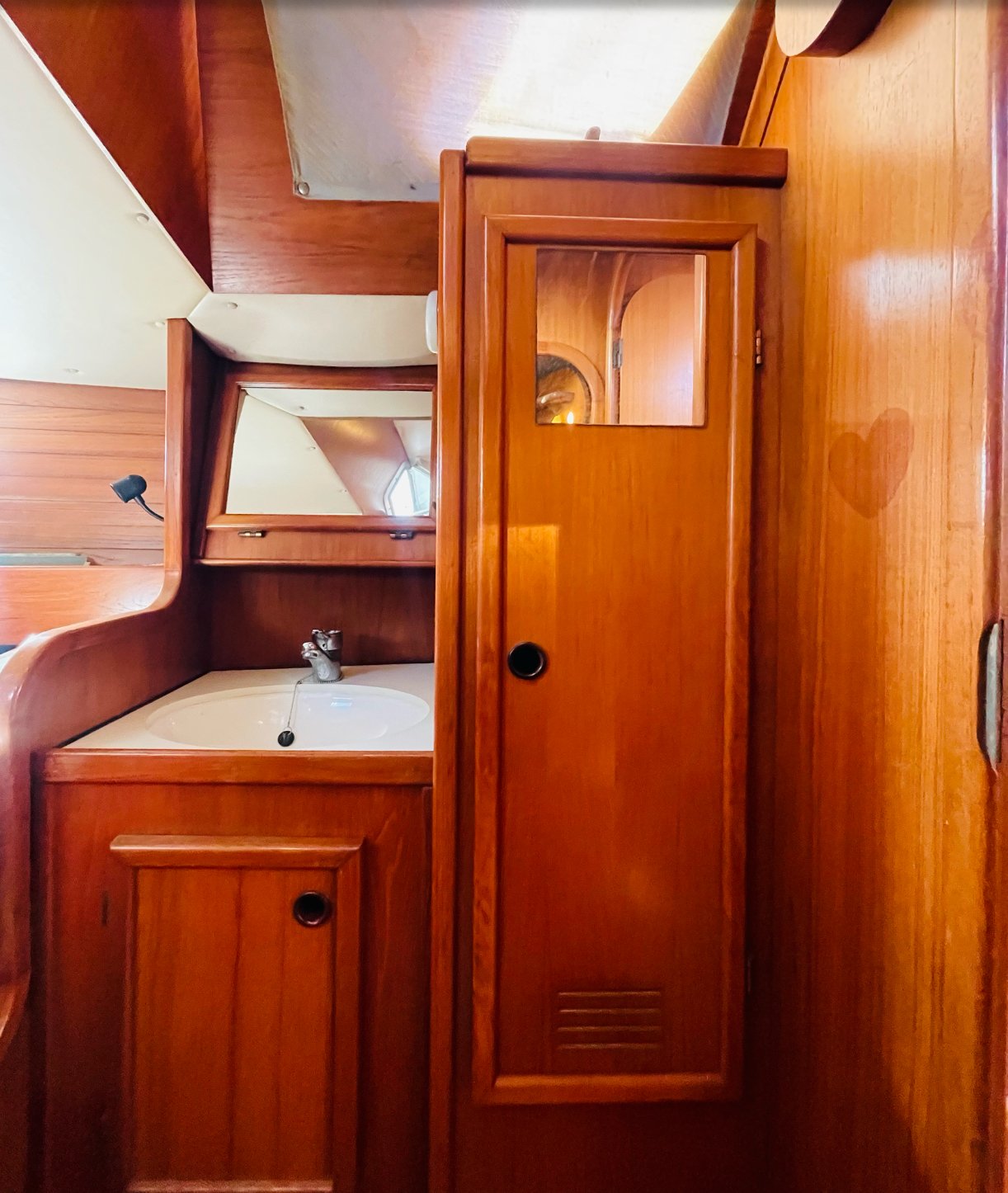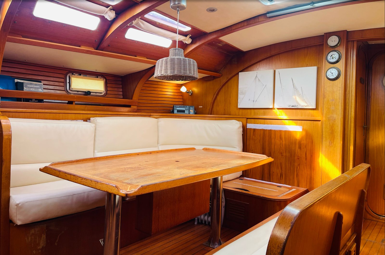 Un voilier à la fois puissant et rassurant, taillé pour les voyages au long cours, les mouillages turquoise et les nuits étoilées au milieu de l’océan.