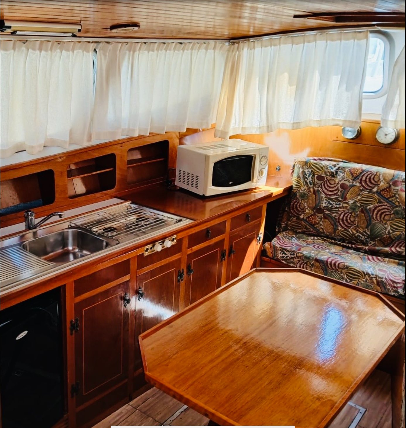 Cette vedette hollandaise ne se contente pas d’être un bateau, c’est un véritable havre de paix flottant, où chaque détail a été pensé pour allier charme et fonctionnalité. Naviguer à son bord, c’est retrouver la simplicité d’une vie en harmonie avec la nature, bercé par le clapotis de l’eau et la beauté des paysages.