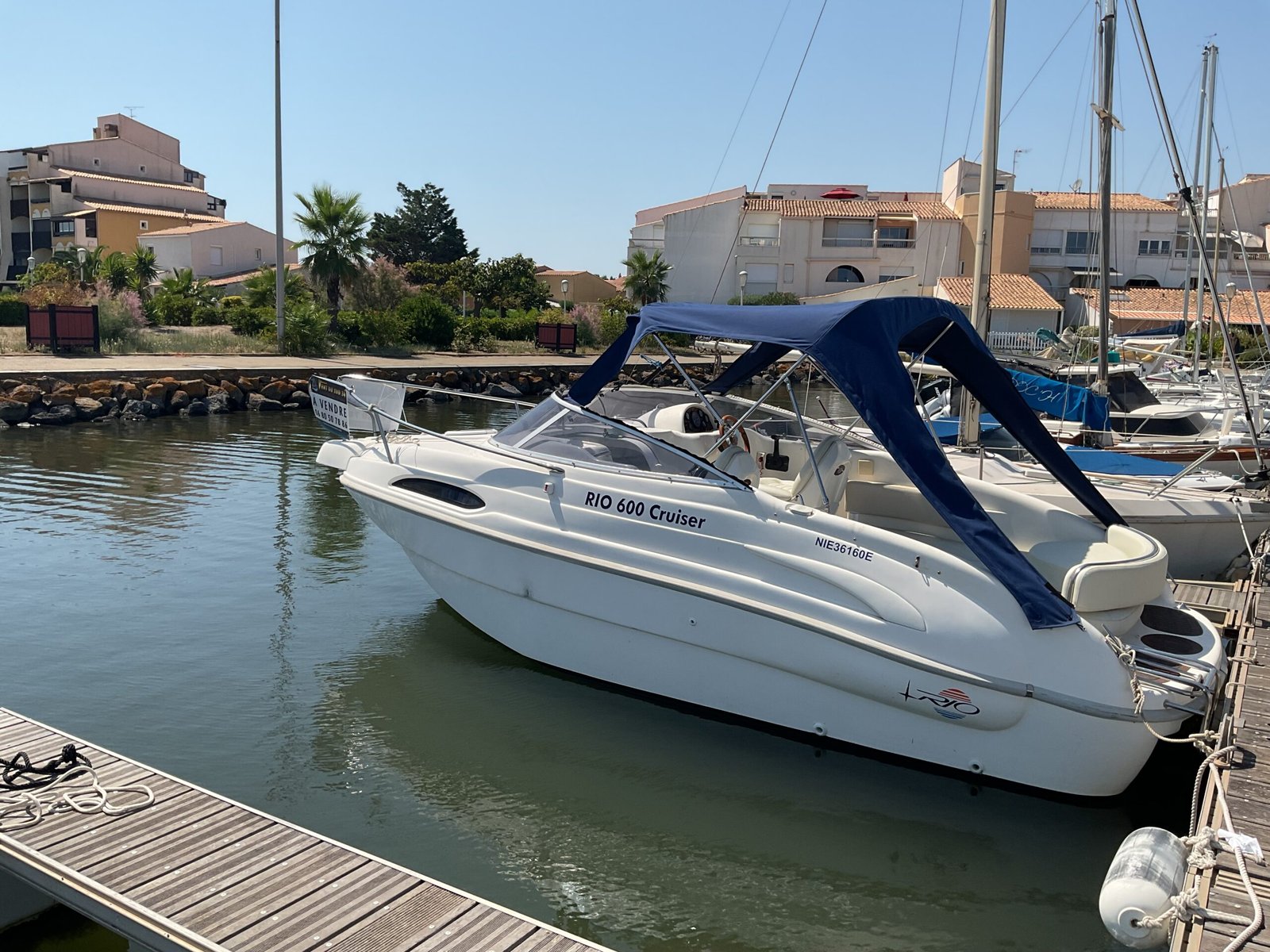À vendre Vedette Rio 600 Open, idéale pour la croisière côtière ou les sorties en mer en famille ou entre amis. Bateau en très bon état, bien entretenu, visible au Cap d’Agde (village naturiste).